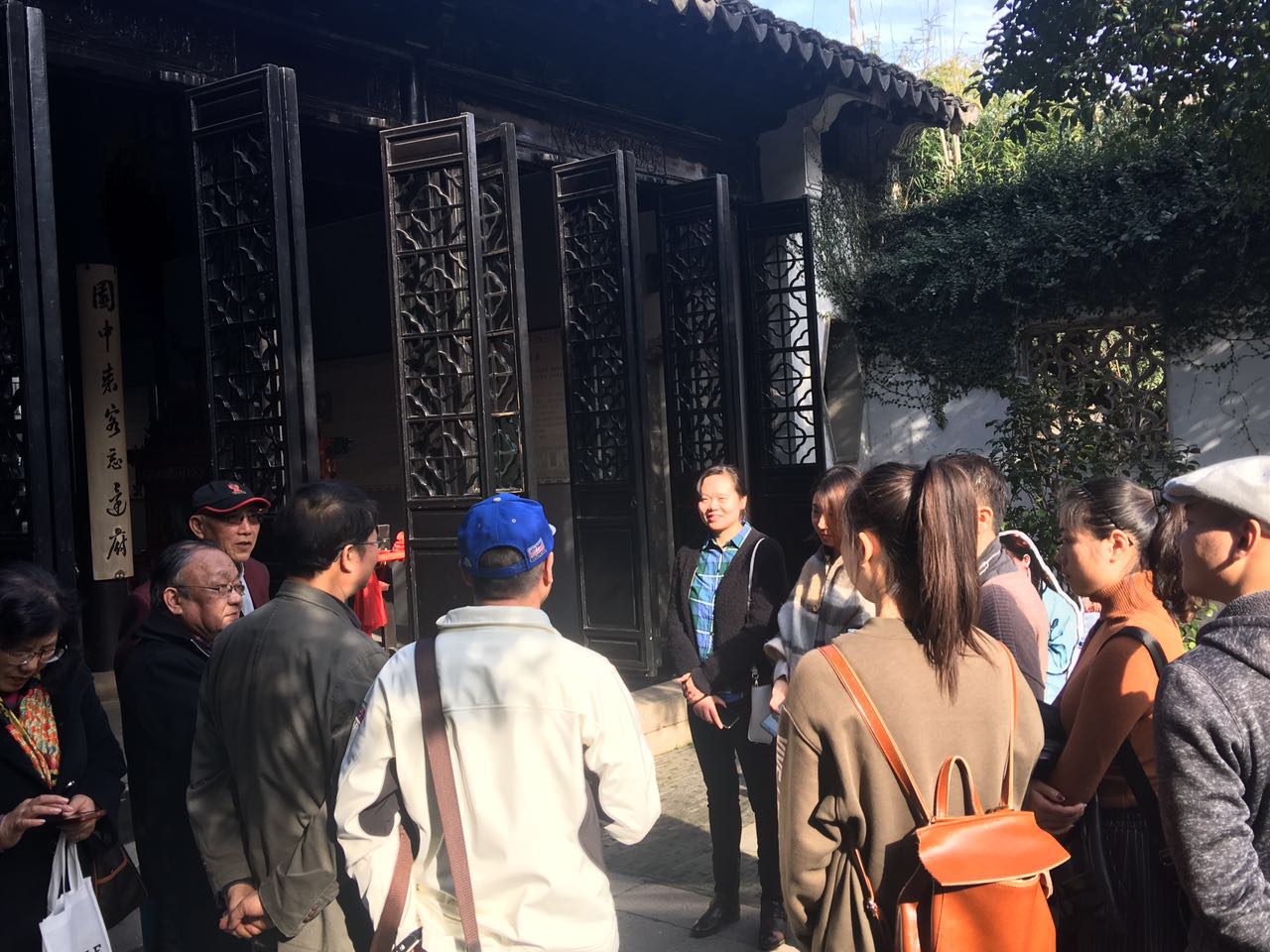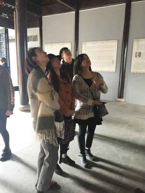 出严家花园后,我们一行人来到了乾隆六下江南的行宫,虹饮山房。其花厅、圣旨馆处处体现出灵气和雄伟。在亭台小歇期间,几位关工委老师给我们讲了明清时期,苏州的工匠和民间艺人们创造的辉煌,我系老师及学生党员深深体会到吴文化的博大。