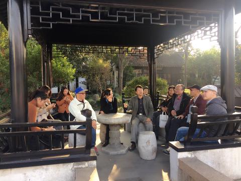 2、虹饮山房的小亭内关于吴文化的畅谈