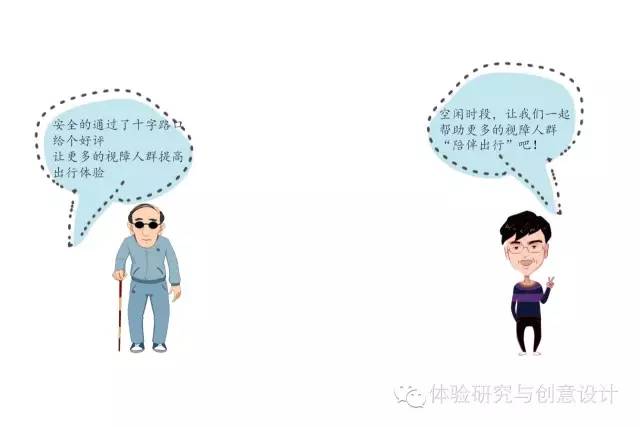 产品“瞳行”以视障人群出行为切入点,旨在通过完善他们出行的体验,从而使得盲人可以在移动端的帮助下完成独立或半独立的短途出行,这种独立或半独立出行行为不但拓宽了盲人生活的可能性,并且也在某种程度上帮助其自身价值及自我认同感得到提升。