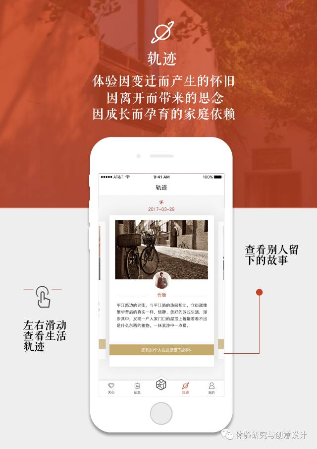 “城事”以苏州人(居民)为核心用户,通过基于地理位置的“兴趣圈子”,基于各类主题的来自官方、商家和个人的“征集令”,并利用弱社交的组织方式,来吸引和帮助人们把自己的生活片段和故事进行记录和分享。从而,在“轨迹”中,人们能够体验到因变迁而产生的怀旧,因离开而带来的思念,因成长而孕育的家庭依赖等情感。个人为自己的生活轨迹“添砖”,因而形成自己的生活图景。个人为城市的发展和历史记录“添砖”,因而汇聚成苏州城市的发展图景。