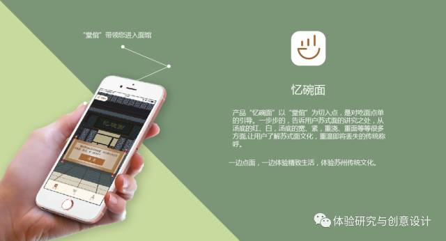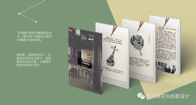 “忆碗面”还利用AR增强现实技术,吸引用户对面店本身的环境进行探究。使游客,或者新苏州人,在游戏式的互动过程中,发现更多的传统元素,了解更多的苏州传统和历史。