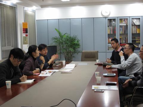 2014年11月27日,www.bet3365.com何敏主任、秦慧副主任一行四人,专程赶往南京凤凰传媒集团江苏美术出版社考察学习,并与出版社领导等人进行了合作洽谈。
