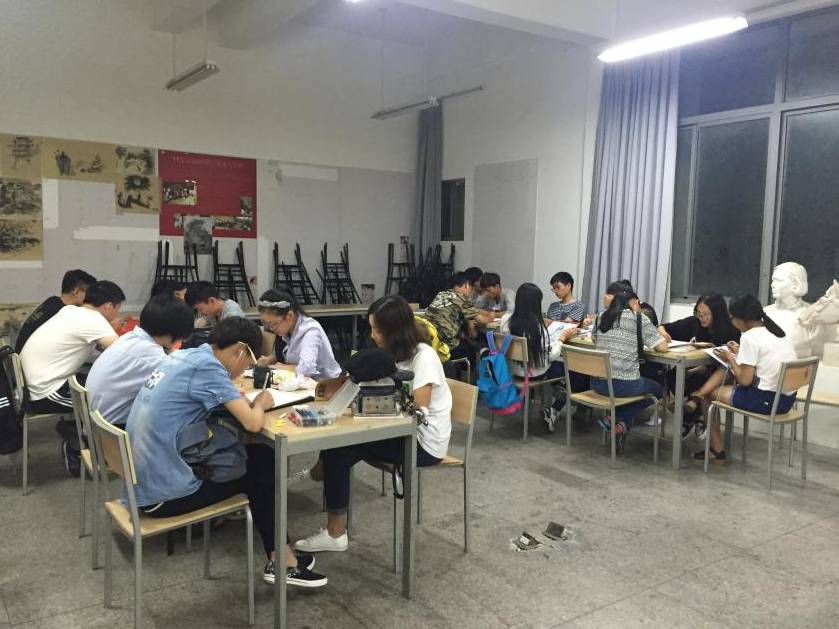 2016年9月26号晚上,大一新生们学校C01进行了第一次速写课程的晚自习。