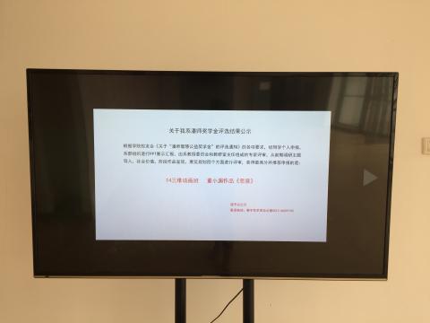 汇报会由教授委员会秘书李闽老师主持,她详细介绍了本次奖学金的评选细则,并着重强调了“公开、公平、公正”的评选原则。最后从前期调研主题导入(40%)、社会价值(20%)、阶段作品呈现(20%)、展览规划(20%)四个方面进行评审。获得最高分并推荐申报的是:14三维动画班 董小湄的作品《恶意》。最后,在系宣传栏完成公示。