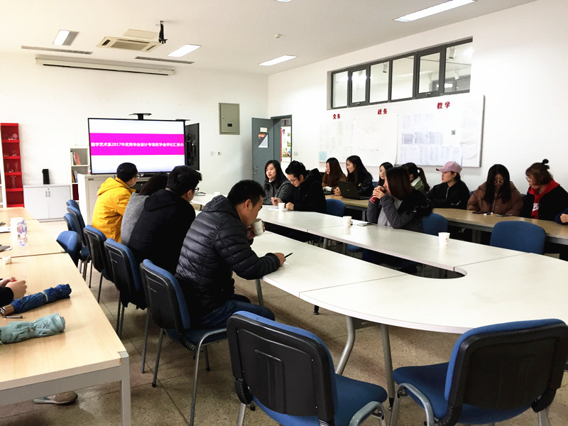 根据苏美院学〔2017〕6号《关于申报2017年毕业生优秀毕业设计专项奖学金工作的通知》的各项要求,经同学个人申报,毕业设计老师推荐,3月23日上午,我系“优秀毕业设计专项奖学金”评选汇报工作在会议室开展,由系教各工作室教师组成的专家评审现场打分评比,系兼职纪检员列席会场监督整个评比过程。