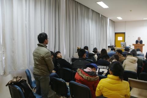 在自由提问环节,同学们踊跃发言与王洪志先生热烈讨论,现场热闹非凡。王先生表示希望同学们能够怀有一个虚心的态度,自信的对待自己,踏实的学好专业知识。