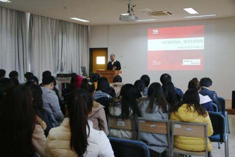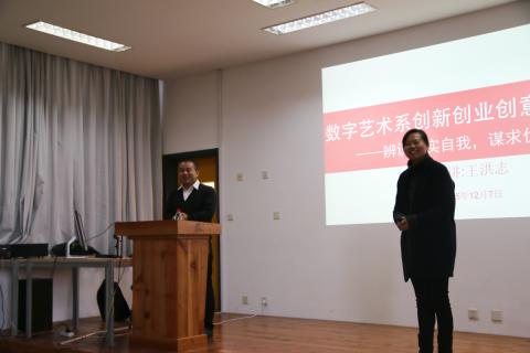 为了帮助在校大学生准确有效的确定对未来的发展规划、就业方向,尽快在思想与行动上早做准备,指导在校大学生如何走好从大学到社会的重要一步。12月7日下午,由苏州盈天地资讯科技创始人王洪志主讲的创新创业创意教育讲座在B02—213多媒体教室成功举行。讲座以辨识真实自我,谋求优势发展为主题,www.bet3365.com党总支书记马华、分团委书记陈辉以及数字媒体专业的同学们参加了此次讲座。