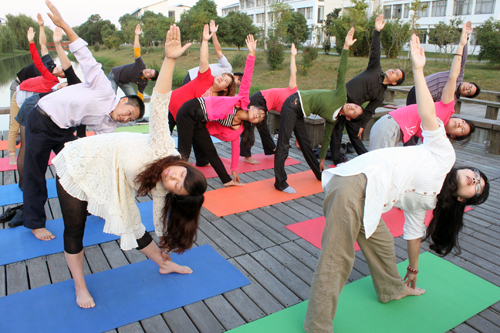 继2011中职国培学员有氧操俱乐部开展活动之后,学员课余生活有了很大变化,参与运动锻炼的积极性高涨,为了满足多层面学员的需要,丰富学员运动项目的选择,在学院培训基地和体育部的大力支持下,由计算机平面设计班学员薛玮玮老师精心组织,学员瑜伽俱乐部正式成立并开展常态活动。