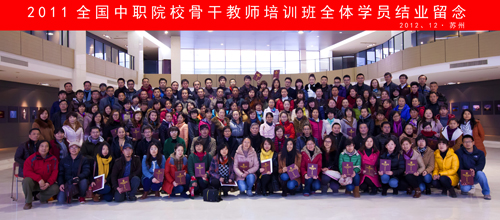 黄海副院长对本次培训工作作了总结讲话,他再次解读了教育部关于职业教师素质提高计划的相关文件内容,总结了学院在本次培训工作中在教学实践、课程方案、企业实践、质量控制、技能鉴定等方面的一些新举措、新尝试和新突破,同时,黄院长还强调了学院各级部门如何高度重视,在教学、生活等各环节保障培训工作的顺利进行,黄院长还与大家分享了培训的一个调研问卷分析,感谢学员的配合和支持,问卷将对我们今后的培训工作提供可靠的参考。最后,黄院长希望每一位学员都能够在教学法、课程设计、课程开发等方面继续加强研究和实践,不断提升教学水平和改善教学方法,真正发挥骨干教师的作用和力量,不断提升中等职业教育的教学质量。