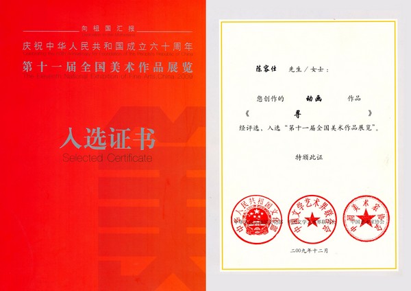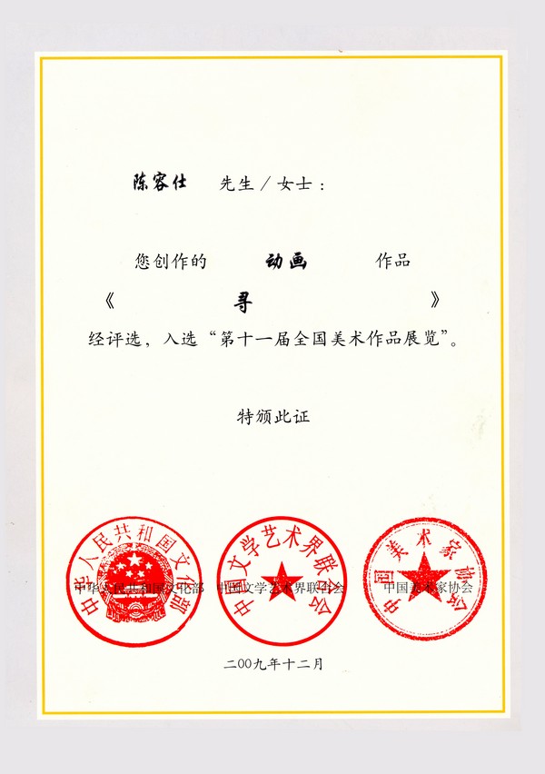2009年陈容仕动画作品《寻》入选第十一届全国美术作品展览