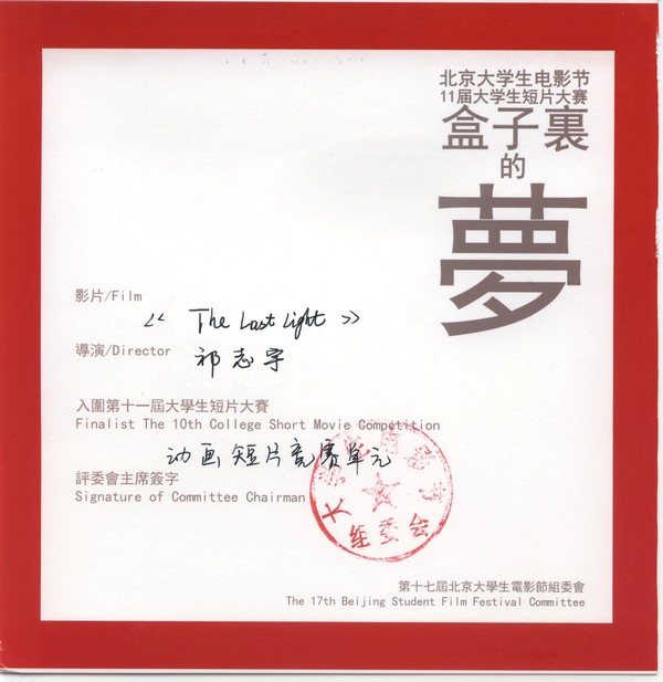 2010年祁志宇《the last night》入围北京大学生电影节第11届大学生短片大赛动画短片竞赛单元