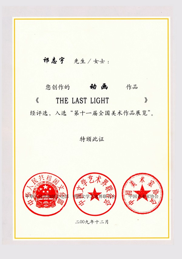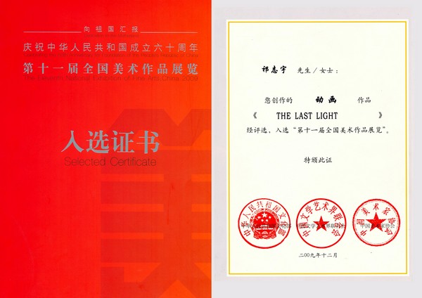 2009年祁志宇动画作品《THE LAST NIGHT》入选第十一届全国美术作品展览